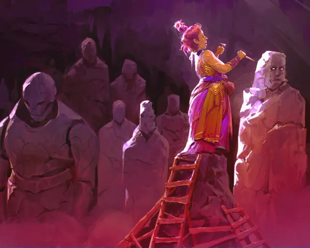 Uma vez por descanso longo, esta carta pode imitar as habilidades de outra carta de domínio de 8o nível ou menor na mão de outro jogador. Gaste uma quantidade de Esperança igual à metade do nível da carta para ter acesso à habilidade. A cópia permanece até seu próximo descanso ou até o outro jogador colocar a carta original na reserva.